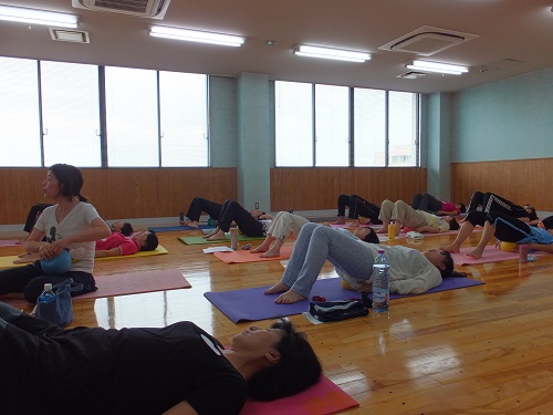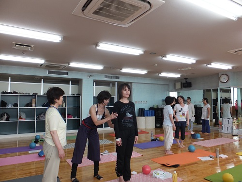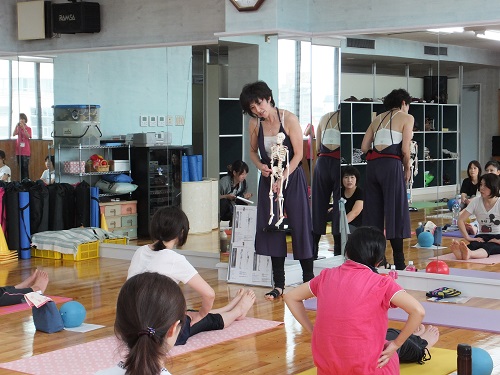 グループに分かれて体のゆがみや姿勢をチェックしたり、骨格や筋肉について学びながら深層筋(インナーマッスル)を緩やかに鍛えていただきました。
