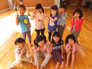 音楽に合わせてリズム感を養いながらダンスをしていきます。